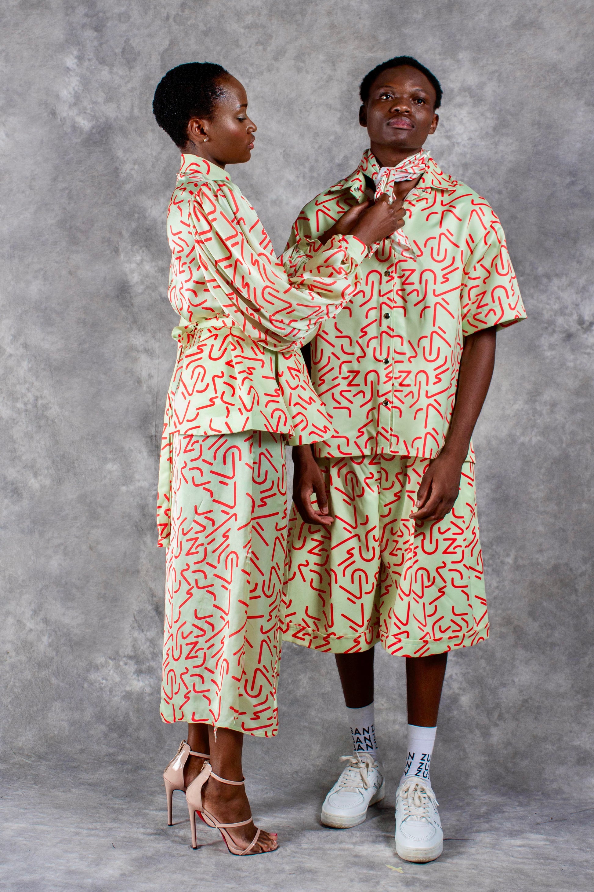 lime and orange future print shirt in cotton satin
